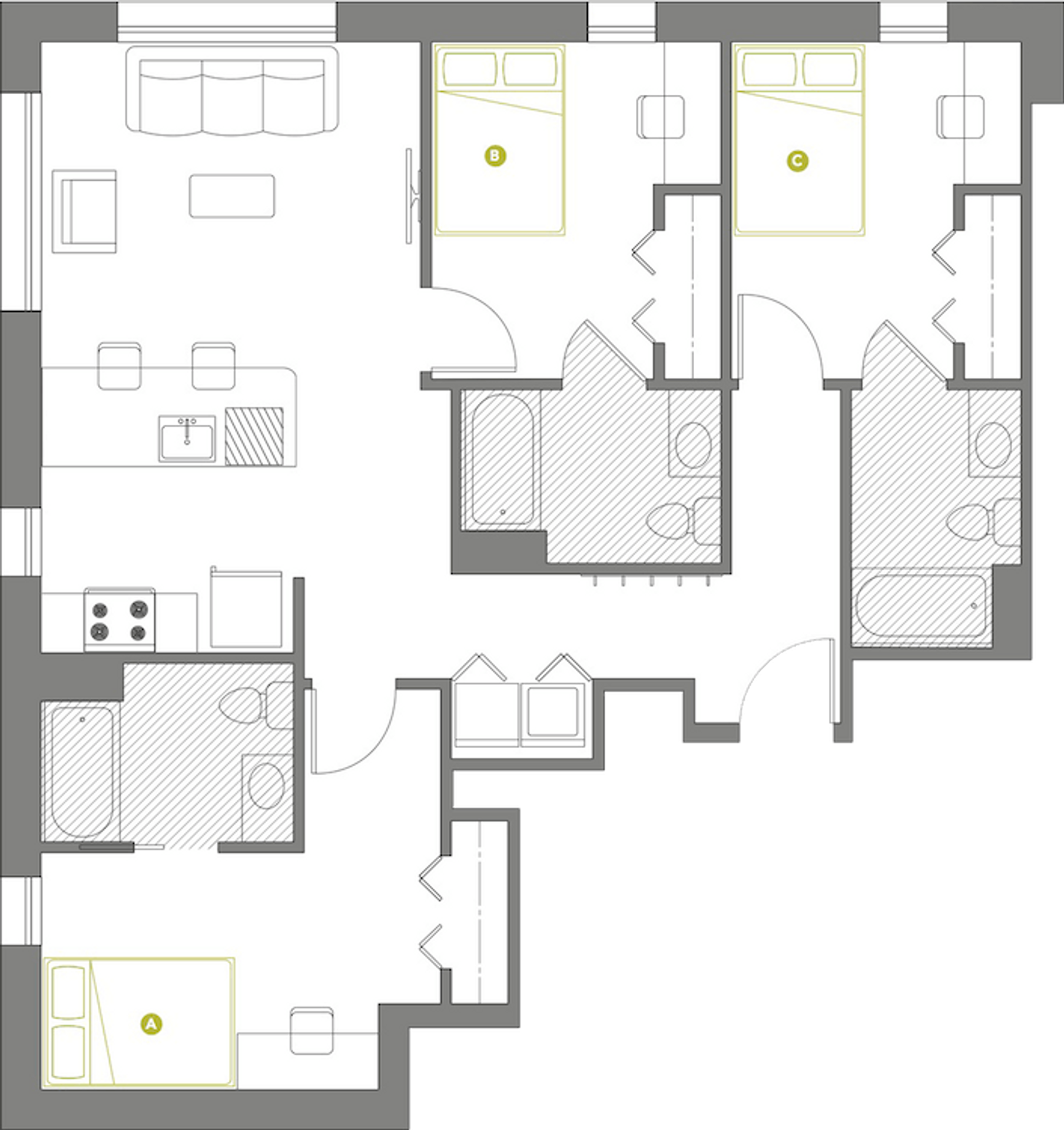 3 Bed 3 Bath Penthouse Corner