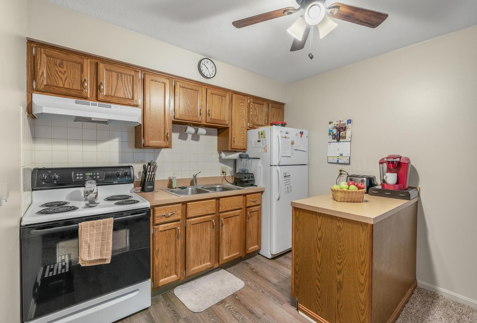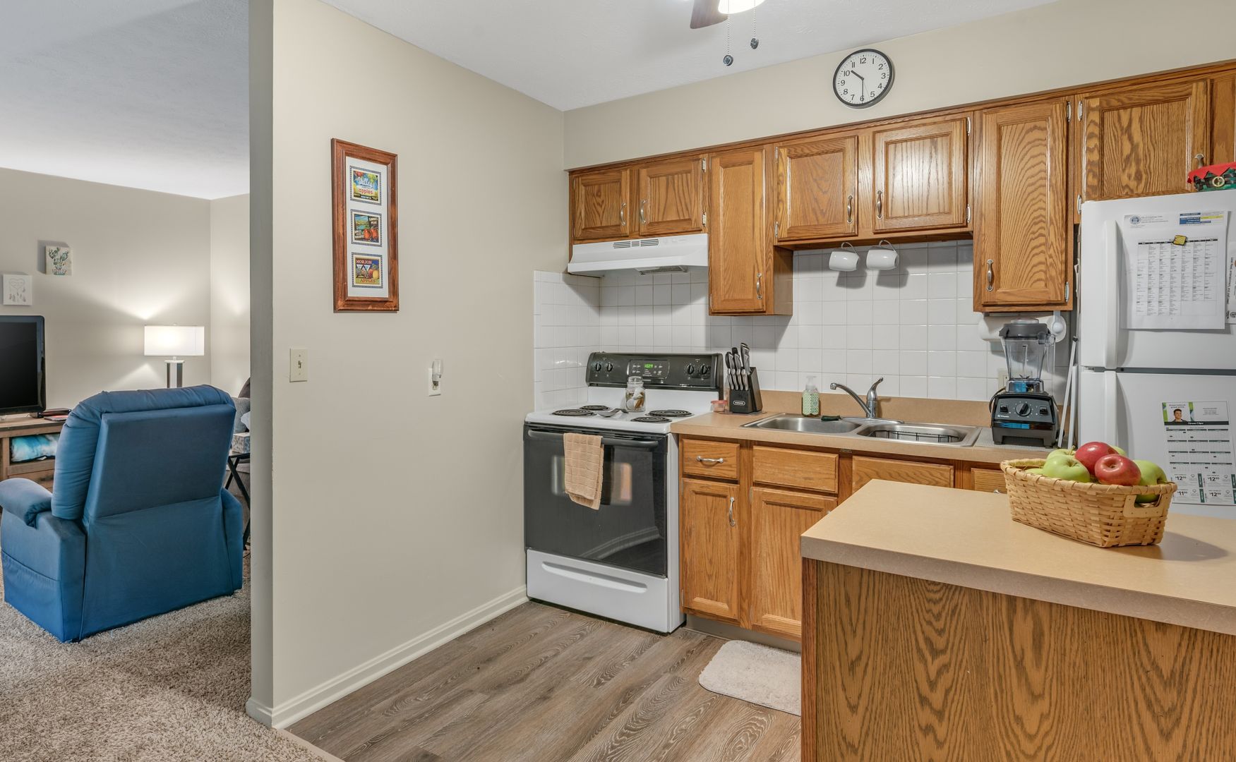 The 800 square foot, two bedroom, one bathroom apartments feature an eat-in kitchen with ample cabinet storage, on-site laundry facilities, air conditioning, and covered parking.